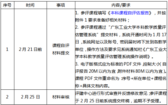 2.请各参评课程应积极配合整体进度,按照《本科课程评估工作手册(2021)》要求开展自评工作,并提交材料;