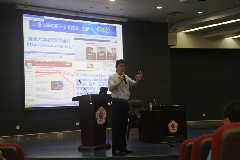 本次培训由我校副校长章云教授和副校长郝志峰教授作主题报告,并邀请了华南师范大学教务处处长熊建文教授作专题报告。章云教授在报告中,围绕如何“培养人才”和如何做好“如何‘培养人才’”这两个主题,通过对学科建设、专业建设、课程建设等方面的严谨分析,结合审核评估的目的阐述了大学人才培养等问题。他强调,要以高水平大学建设和迎评促建工作为契机,进一步做好我校的师资队伍和协同平台的建设工作,为优秀人才的培养提供重要保证。郝志峰教授从评估专家的角度,通过生动的案例、风趣的言语解读了本轮审核评估的特点、标准内涵和工作总体要求。报告中大量的事实数据信息,使我们对新模式下的审核评估工作有了更深刻的认识。熊建文教授介绍了华南师范大学对本科教学工作审核评估的认识、迎评工作进程及参评体会。华南师范大学的迎评实战经验对我校顺利推进下一步的评建工作具有重要的指导意义。