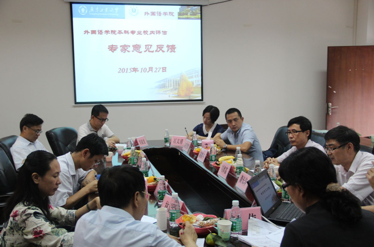 为了加强我校本科专业的学科建设与专业发展,进一步深化本科教学改革,提高办学质量。根据学校 “本科专业校内评估”工作部署,我院于10月27日正式邀请专家入驻学院开始对我院英语(科技)和英语(翻译)两个专业的校内评估工作。受邀的8位评估专家来自兄弟相关高校、行业协会和相关企业。外国语学院对此次评估高度重视。我院领导刘伟书记亲临现场指导评估工作;林耀群副院长、刘亚龙副院长、张道振副院长和石义清副书记、两个参评专业的负责人及部分专业骨干教师出席了本次专业汇报会。
