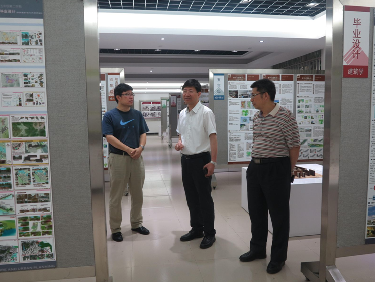 2015年5月21日下午,由同济大学彭震伟教授、浙江大学华晨教授、山东建筑大学闫整教授、上海市城市规划设计研究院苏功洲教授级高工四位专家组成的全国高等学校城乡规划专业本科教育评估专家组,在昨天听取了陈新校长的学校概况介绍和学院周祥副院长的城乡规划专业自评报告后,按照考察工作安排,先后听取了专业理论课程教学,审阅了城乡规划专业学生的设计课作业、实习报告、毕业设计作业,检查了教学计划、大纲和教学管理文件,走访了学院专业课室,召开了专业课程教师代表座谈会、公共课程教师代表座谈会、学生代表座谈会及校友代表座谈会,分别与教师代表、学生代表、校友代表进行了交流,详细了解我院城乡专业的人才培养模式、课程设置、教学管理情况、专业办学特色和经验。