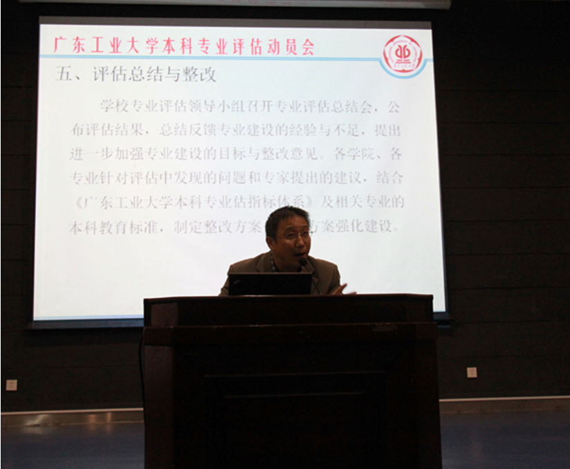 陈新校长作大会动员,他首先梳理了我校的 “三个结合”的办学思路,一、坚持学校建设与地方发展相结合,把本科专业的办学目标与社会需求结合起来,二、将科研和教学相结合,两者不可偏废;三、将学生价值观培养与人才培养全过程相结合,将“把教书育人、管理育人、服务育人紧密结合起来发挥合力”落到实处。陈校表示在思路的指引下,近年来我校在教育、教改领域所取得的重大成效,特别是一系列多样化、个性化的人才培养方式的实施在省内起到明显的示范效应。为了更进一步提升我校的办学水平,今年我们在全校范围内开展专业评估,希望以专业评估工作为抓手,以高水平大学建设工作为契机,围绕“科学研究、产学研合作、学科建设、人才培养”进行建设,增强自身软硬实力的同时也为地方经济发展提供高层次的人才和科研成果的支撑。
