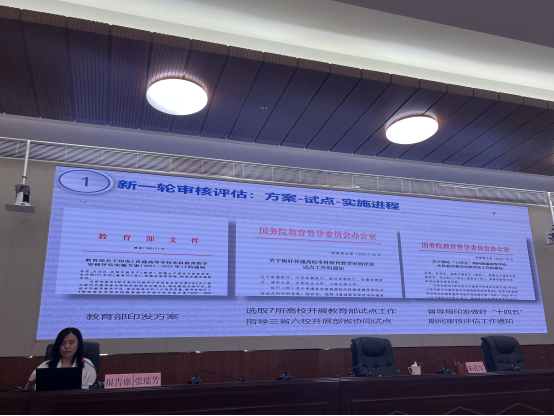 会议由4个专题报告组成。省教育厅省委教育工委书记,省教育厅党组书记、厅长朱孔军介绍了我省审核评估准备情况及“十四五”期间评估工作安排,对全省普通高校本科教育教学审核评估工作作出动员部署。与会专家分别以“新一轮审核评估方案解读与实施要点”“新一轮审核评估试点经验交流”等为题作报告,从不同层面、不同角度对新一轮审核评估的理念、政策和实施要点进行了全方位解读,并详细介绍了评估试点工作经验和评估高校自评自建实践重点。我校本科教学质量评估与建设中心张瑞芳副主任在会议上作“新一轮审核评估工作程序及学校评建要点”专题报告。